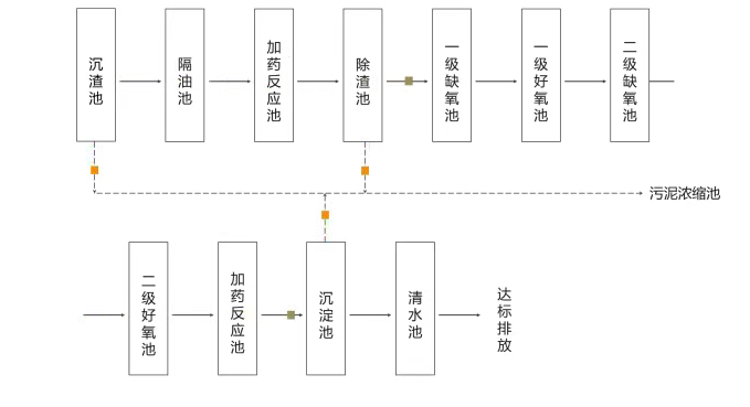 ▼ 常見(jiàn)食品廢水處理工藝流程圖